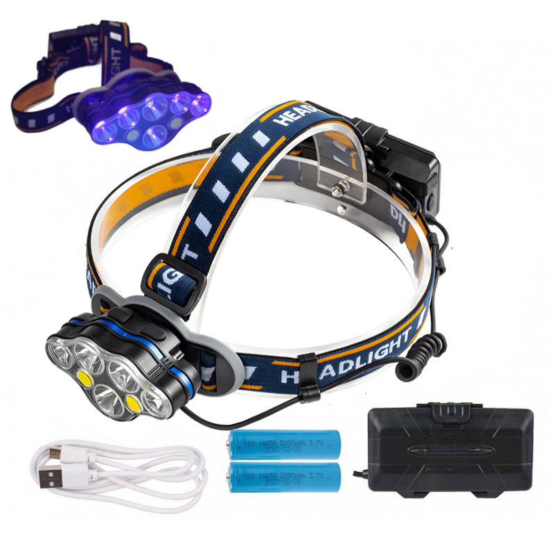 akumulatorów 18650. Świeci trzema kolorami - UV (3x XML + 2x CREE) , białym COB
