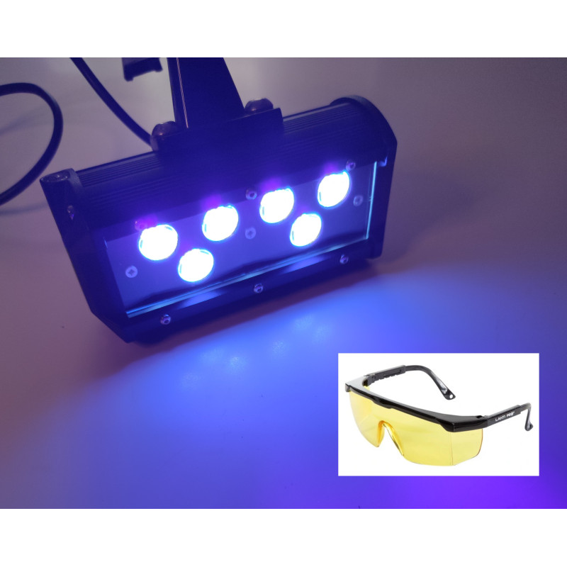 Latarka - szperacz z diodami mocy fioletowymi 405nm + okulary kontrastowe z filtrem